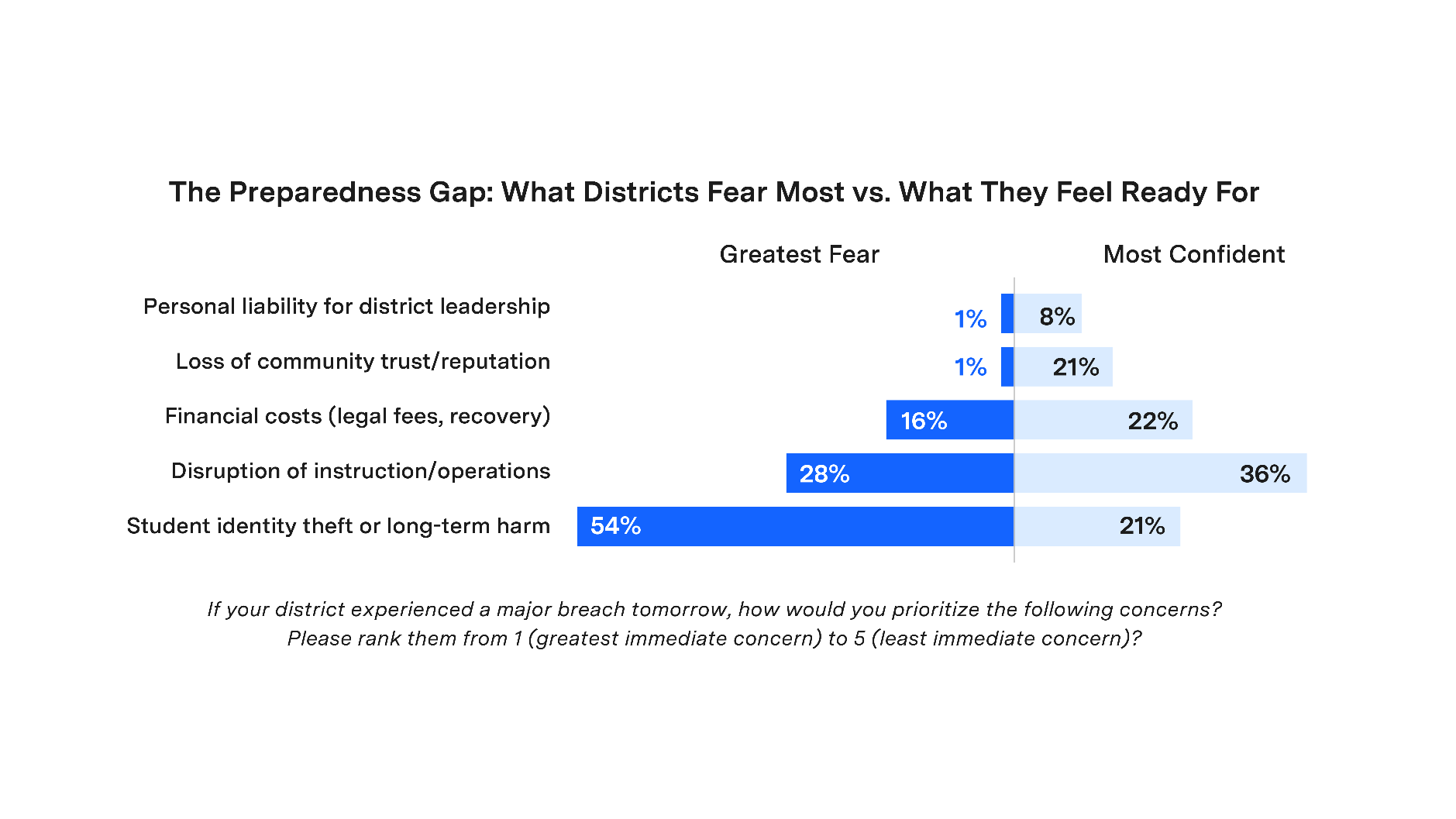 Our survey also found that 54% of school IT admins named identity theft and long-term student harm as their most feared breach outcome. Only 21% felt confident they could handle one.